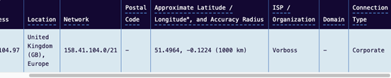 经 MaxMind、IPinfo 和 IP2Location 数据库验证,该服务器分配的 IP 地址归属于 Vorboss Limited,其地理位置精确至英国伦敦。这些线路支持真实的企业级网络特性,同时提供优质的固定线路 ISP 连接服务。