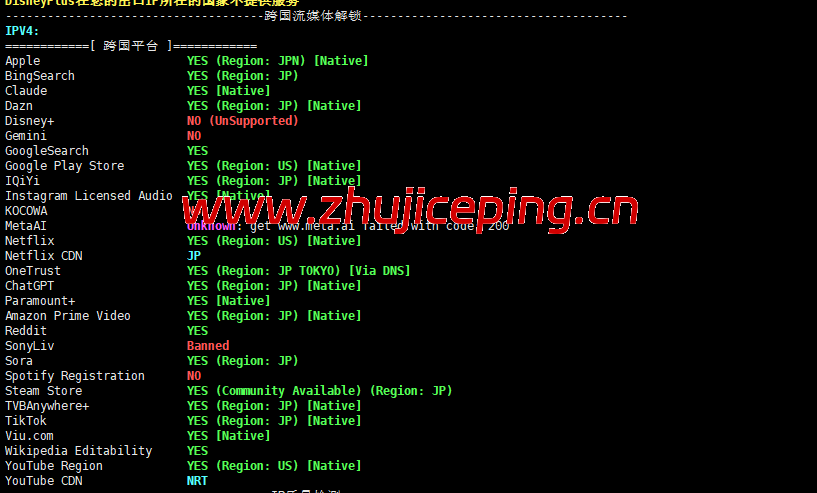 流媒体解锁测试